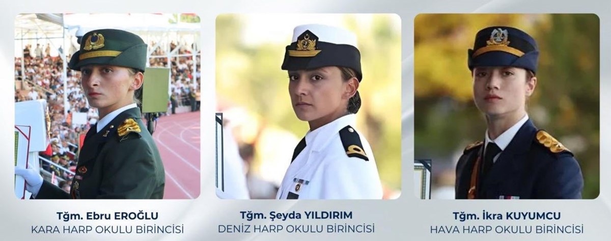 Ankara'da Kara Harp Okulu'nda, Teğmen Ebru Eroğlu, İstanbul'da Deniz Harp Okulu'nda Teğmen Şeyda Yıldırım ve Hava Harp Okulu'nda Teğmen İkra Kuyumcu dönemlerini birinci bitirdi. Birinci kızlar, diplomalarını Cumhurbaşkanı Recep Tayyip Erdoğan'dan aldı. Erdoğan, 3 okulda da birinciliği kızların aldığının tesadüf olmadığını vurguladı. Cumhurbaşkanı Erdoğan, "Bu herhangi bir tesadüf değil, kızlarımızın gerçekten harp okullarımıza olan ilgi ve alakası, bunun neticesinde çalışmaları ve verdikleri mücadele, bu mücadeleyle de hamdolsun kara, hava, deniz buralardaki alınan netice." dedi. 24 yaşında olan Kara Harp Okulu'ndan mezun olan Teğmen Ebru Eroğlu İstanbul'da doğdu. Liseye kadar İstanbul'da öğrenim gördü. 22 yaşında ki Deniz Harp Okulu'nun birincisi ise Teğmen Şeyda Yıldırım'dı. Kocaeli doğumlu Yıldırım, mezun olmasının gururunu yaşadığını ifade etti. Hava Harp Okulu birincisi ise 23 yaşında olan Teğmen İkra Kuyumcuy'du. Kuyumcu İzmir Amerikan Lisesi'nden mezunu.